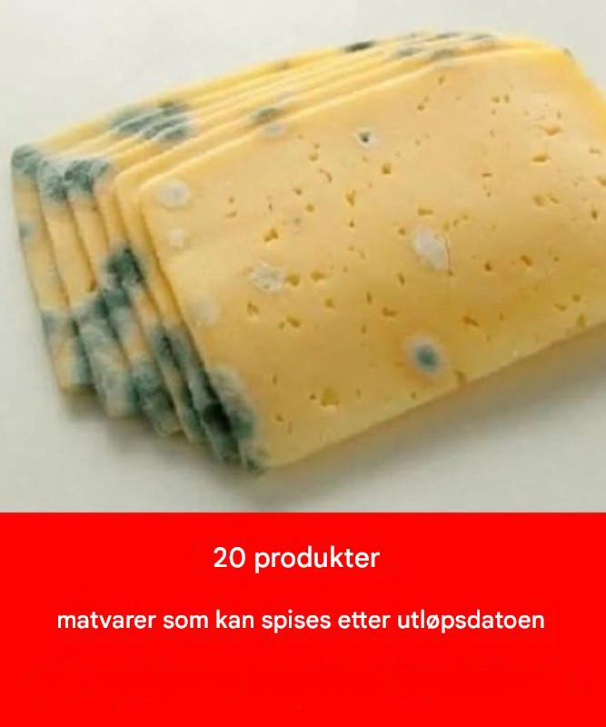 Harde oster som cheddar eller parmesan kan vare i flere uker etter utløpsdatoen. Mugg på overflaten kan fjernes.