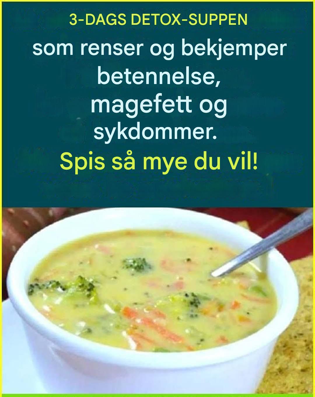 Ved å følge dette detox-programmet gir du kroppen din muligheten til å rense seg selv naturlig. Detox-suppene vi tilbyr er ikke bare deilige og beroligende, men lar deg også skånsomt og effektivt maksimere helsen din. Ved å innlemme disse suppene i din 3-dagersrutine, vil du rense kroppen din, styrke ditt naturlige forsvar og nyte fordelene med grønnsaker og krydder for en fornyet følelse av velvære. Klar til å starte detox-programmet ditt? Prøv disse enkle oppskriftene og kjenn forskjellen!