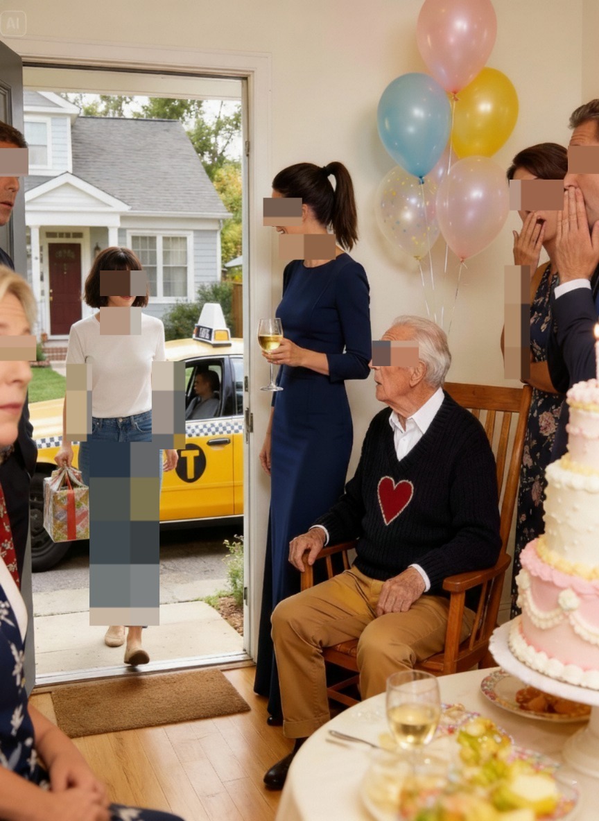 Bursdagslunsjen fortsatte, men stemningen hadde snudd – uansett hvilken glede det hadde vært, ble den ødelagt av det som skjedde på verandaen. Jeg satte meg ved siden av bestefar, ikke fordi noen hadde veiledet meg dit, men fordi det var der jeg alltid endte opp. Selv da jeg var liten, hadde jeg vært den som var ved hans side, lyttet til historiene hans, lært praktiske ting – hvordan man skifter olje, hvordan man håndterer penger – ting ingen andre gadd å lære meg.
