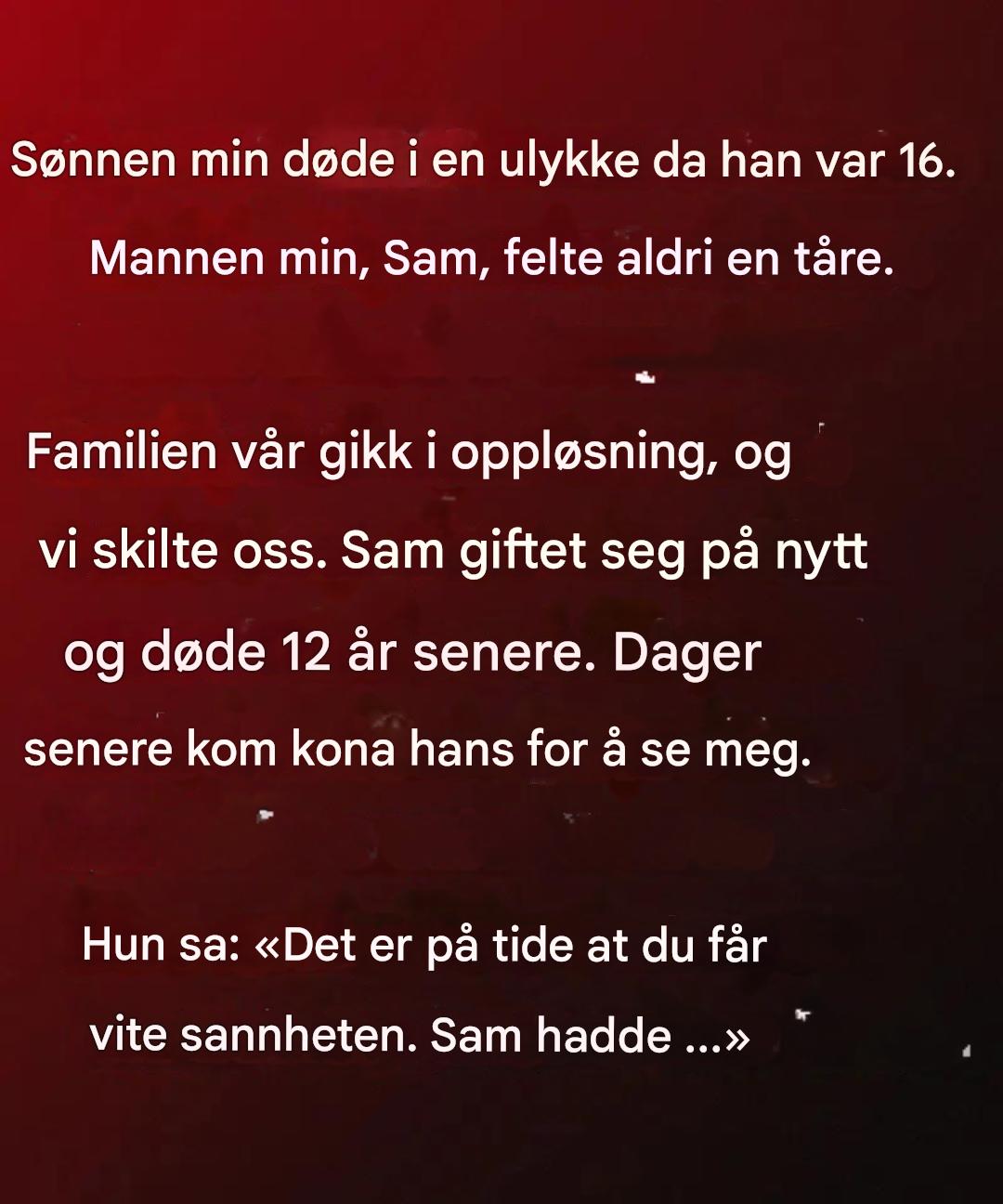 Hun sa: «Det er på tide at du får vite sannheten. Sam hadde…»