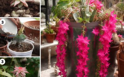 Planten på bildet er en praktfull hengekaktus eller sukkulent som blomstrer i lange, rosa kaskader. Den tilhører samme type som…
