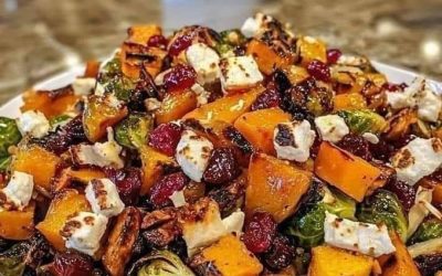Instruksjoner: Trinn 1: Stek grønnsakene • Forvarm ovnen til 200 °C. • Bland butternut squash, rosenkål og søtpoteter med olivenolje,…