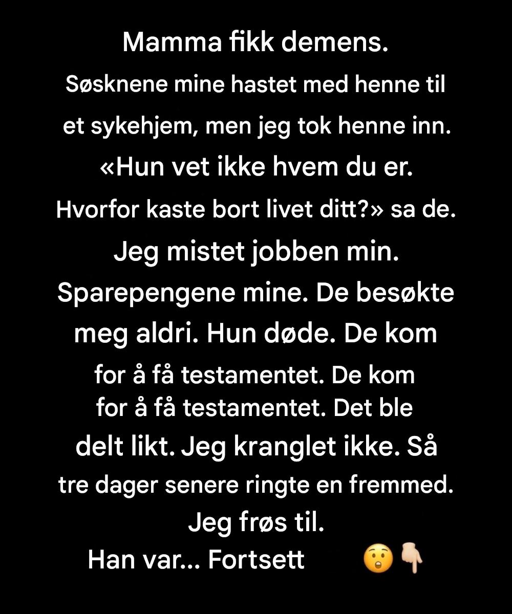 Søsknene mine reagerte raskt og effektivt. De snakket om fasiliteter, ventelister, månedlige kostnader – tall som ble sendt frem og tilbake som forretningstall. Jeg forble taus, fordi jeg allerede visste svaret jeg ville gi.