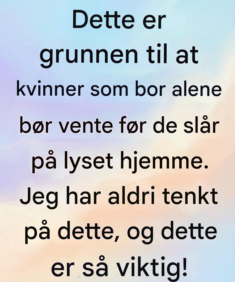 Når du bor alene, blir rutiner til komfort. Du går inn, lukker døren, rekker etter lysbryteren. Det føles automatisk. Trygt. Normalt.