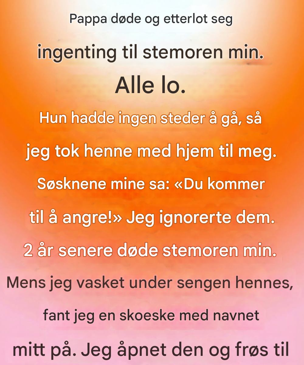 Faren min hadde etterlatt nesten ingenting av materiell verdi til stemoren min.