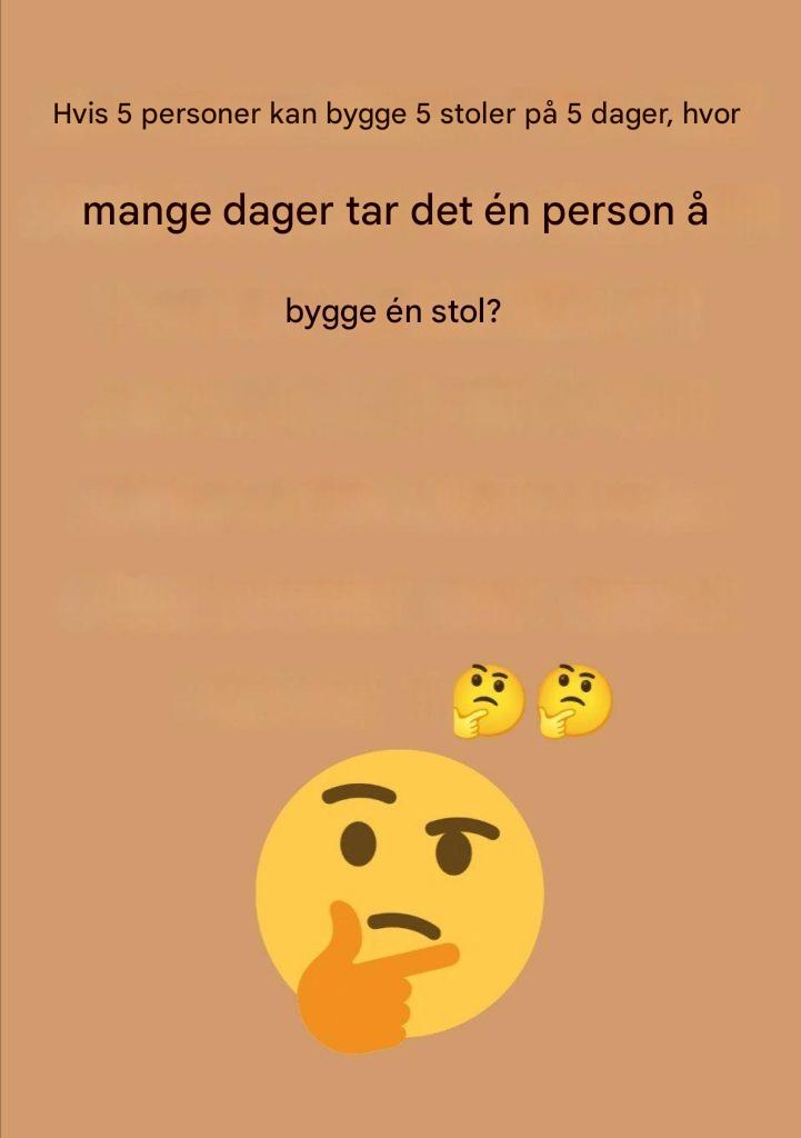 Hvis 5 personer kan bygge 5 stoler på 5 dager, hvor mange dager vil det ta én person å bygge én stol?