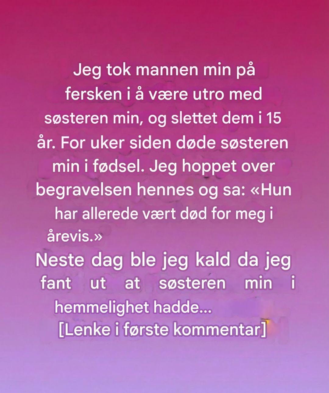 Den troen kollapset på en enkelt natt – stille, fullstendig – da hun gikk inn i en sannhet hun aldri var ment å se. Det var ikke selve handlingen som ødela henne. Det var ansiktene. Mannen hennes. Søsteren hennes. To mennesker som delte hennes blod og hennes seng, stående på samme side av en grense hun aldri kunne krysse igjen.