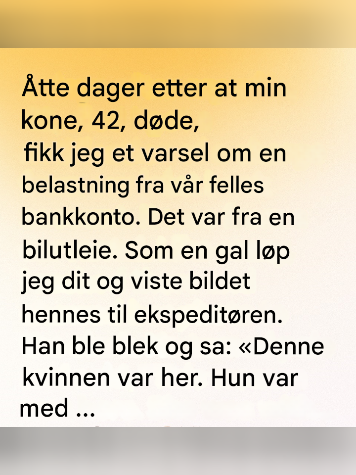 Åtte dager hadde gått siden begravelsen. Åtte dager med oppdagelse av at stillhet ikke er tomt – at den presser ned, at den fyller rom, at den summer i ørene dine når verden slutter å spørre hvordan du har det. Jeg hadde akkurat begynt å lære å puste inn i den stillheten da jeg så den.