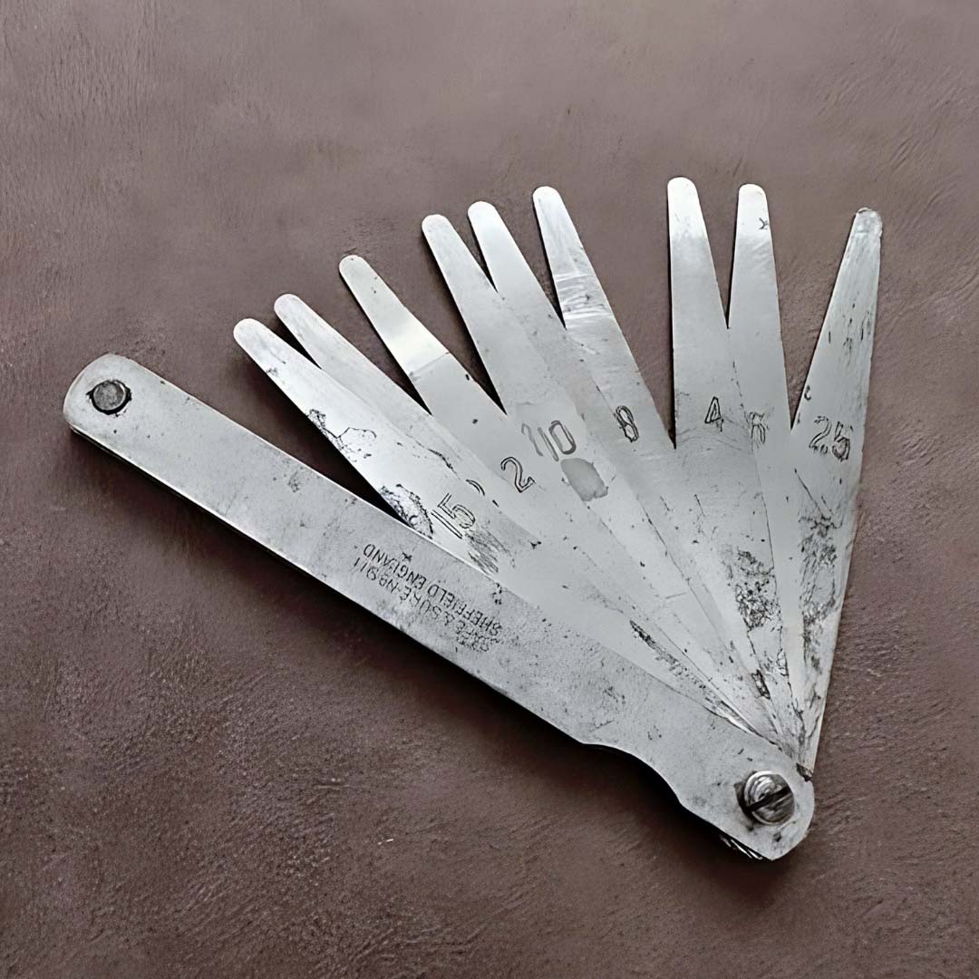 Tykkelsesmåleren er satt sammen av kalibrerte metallblader og er basert på et enkelt prinsipp: velg et blad med ønsket tykkelse og skyv det inn i rommet som skal måles. På få sekunder gir den en bemerkelsesverdig nøyaktig måling. Det er denne kombinasjonen av enkelhet og pålitelighet som gjør den uunnværlig, selv i møte med moderne digitale verktøy.