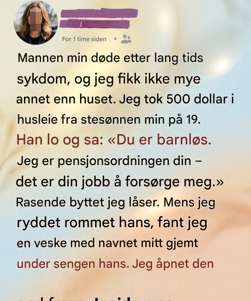 Rommene var de samme, men alt hørtes hult ut, som om veggene selv holdt pusten. I månedsvis før han døde, hadde dagene våre blitt fortært av sykehuskorridorer, laboratorieresultater og forsiktig optimisme. Da alt dette tok slutt, føltes stillheten som fulgte tyngre enn frykten vi hadde levd med før. Ved siden av sorgen kom en bølge av praktiske bekymringer – utestående medisinske utgifter, boliglånsbetalinger og den skremmende virkeligheten av å klare alt alene. Min nitten år gamle stesønn, Leo, bodde fortsatt hos meg. Vi sørget begge, men vi slet også på forskjellige måter og prøvde å forestille oss en fremtid ingen av oss hadde forberedt oss på.