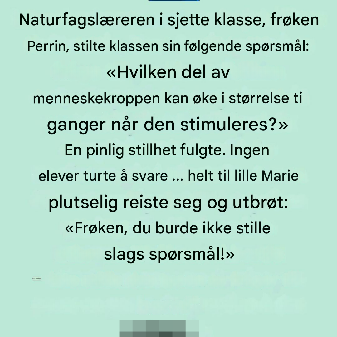 Men fru Perrin stopper ikke der. I en leken, men vennlig tone snur hun seg mot Marie med et blunk: