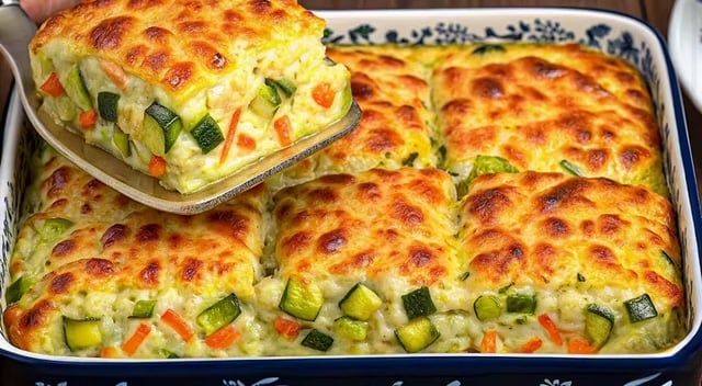 Denne oppskriften på bakt zucchini-grønnsaksmosaikk er den perfekte blandingen av enkelhet og smak, perfekt for sommerdager når det er rikelig med friske grønnsaker.
