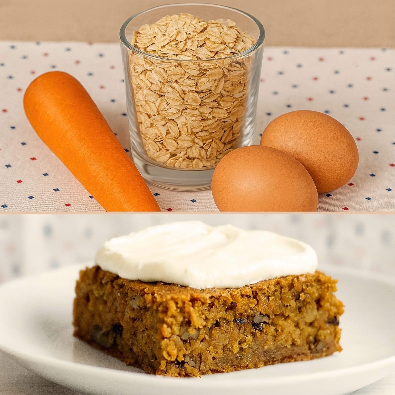 😎 Hemmeligheten ligger i havregrynene: de gir tekstur, metthetsfølelse og en subtil nøttesmak. Valnøtter gir en mild sprøhet som gjør hver bit til et lite eventyr. Gulrøttenes naturlige sødme skinner gjennom, balansert av den milde smaken av honning. Og yoghurten holder alt utrolig mykt uten å tynge det ned. Du vil lage den igjen, og snart blir den en del av familietradisjonen din. Det er det perfekte eksemplet på hvordan comfort food ikke trenger å være tung. Det er et bevis på at sunn baking fortsatt kan være helt uimotståelig. Hvert firkantede stykke ser gyllent, rustikk og innbydende ut. Den er også uendelig allsidig: topp den med kremost, drypp den med mørk sjokolade eller server den naturell med te – den skinner alltid. Denne gulrotkaken er ikke bare en oppskrift, det er en historie fortalt gjennom smaker. En historie om enkelhet, varme og glede som deles ved bordet. Og i dag kan denne historien begynne på ditt eget kjøkken.🥰