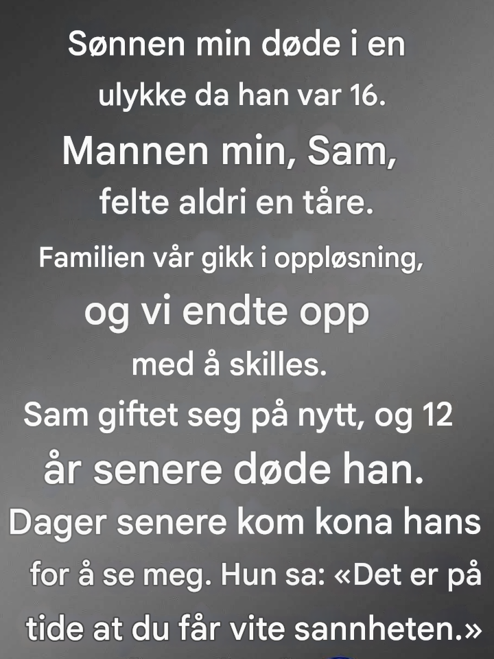 Gjennom mesteparten av ekteskapet vårt trodde jeg at mannen min ikke følte noe dypt. Sam hadde en måte å bevege seg gjennom livet på som føltes ugjennomtrengelig, som om følelsene bare gled av ham. Da vår seksten år gamle sønn døde i en plutselig ulykke, knuste verden min. Jeg skrek, gråt, sluttet å fungere helt.