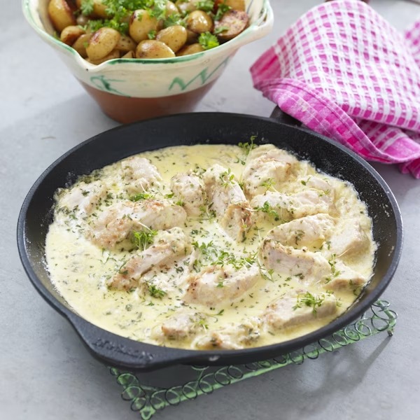 Kyllingfilet i estragonsaus med ovnsbakte poteter – et fransk preg på svensk hjemmelaget mat