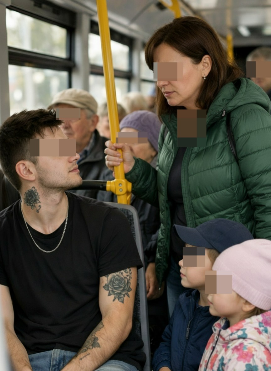 På bussen startet en kvinne med to barn en scene og krevde at en ung mann skulle gi fra seg setet sitt, men plutselig gjorde mannen noe som fikk alle andre til å fryse til is.