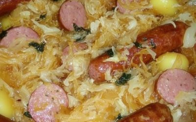 Pølse og surkål Ingredienser 5 til 6 mellomstore poteter, kuttet i store biter 450 g surkål 750 gram Saucisse polonaise,…