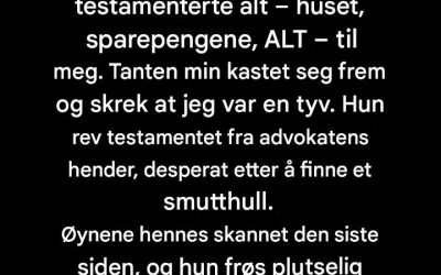 Arven ingen forventet Vi satt alle på advokatkontoret da bestemors testamente ble lest høyt. Alle eiendeler – huset hennes, sparepengene…
