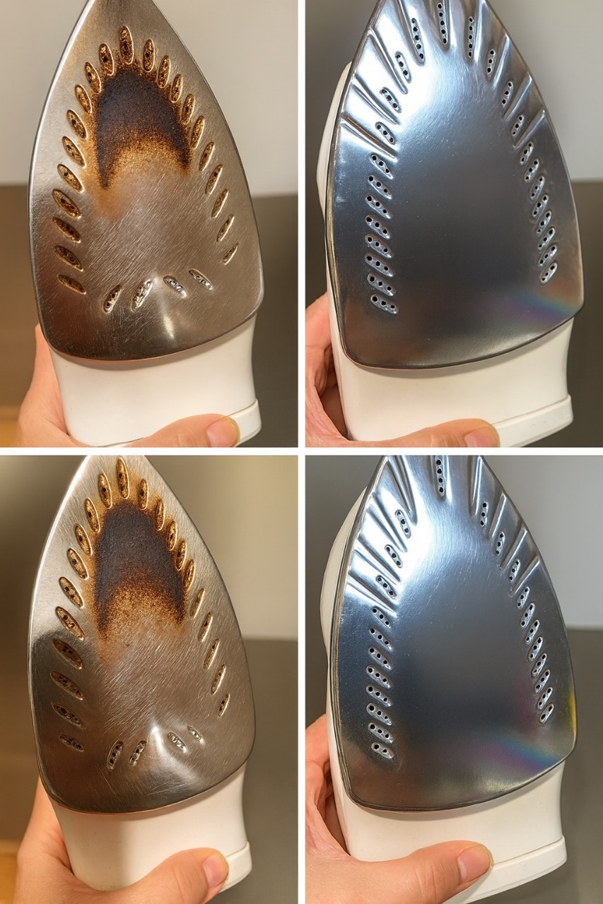 Over tid samler kalkavleiringer, brent stoffrester og små flekker som er usynlige for det blotte øye, seg på såleplaten. Hvis du bruker vann fra springen, er dette fenomenet enda mer merkbart: mineraler siver inn i ventilasjonshullene og danner avleiringer. Resultatet? Strykejernet tetter seg, etterlater flekker og mister effektiviteten.