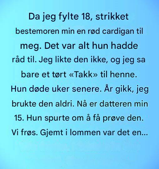 En ung kvinne arvet en rød cardigan fra bestemoren sin. År senere oppdaget datteren hennes skjulte konsertbilletter inni – kjærlighet som stille gikk videre og ventet på å bli funnet.