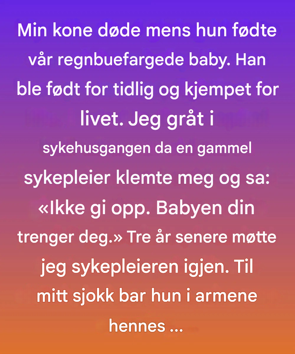 Min kone døde mens hun fødte vår regnbuefargede baby, og sønnen min kom til verden for tidlig og kjempet for hvert overfladiske åndedrag. Jeg husker fortsatt at jeg sank ned på sykehusgulvet, skjelvende og hjelpeløs, da en eldre sykepleier knelte ved siden av meg, la armene rundt skuldrene mine og mumlet: